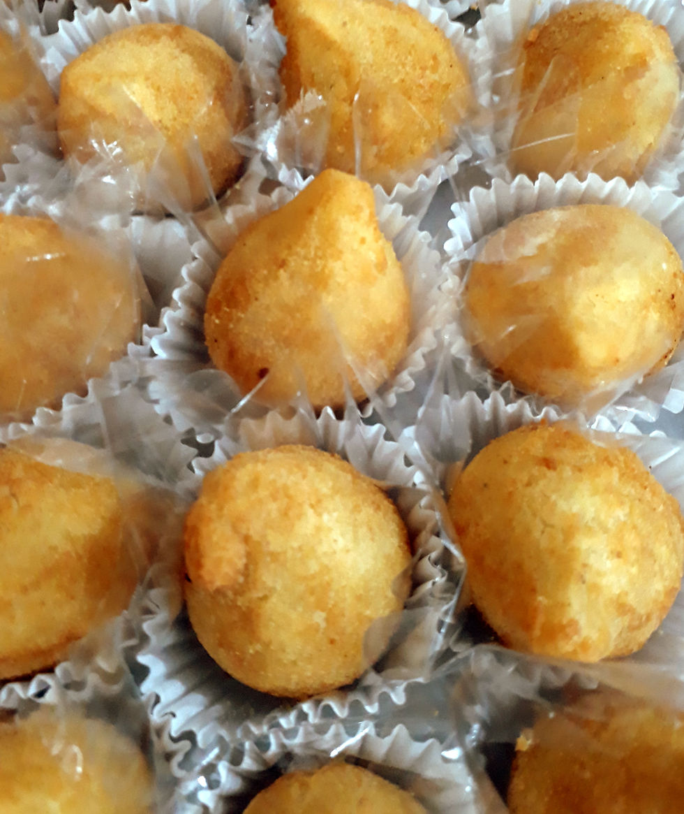 Salgadinho a milanesa de queijo provolone com presunto ou salame